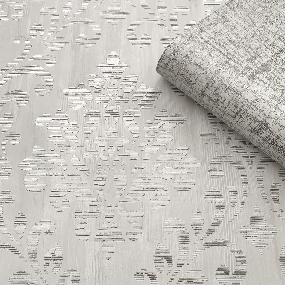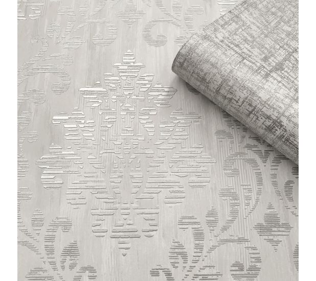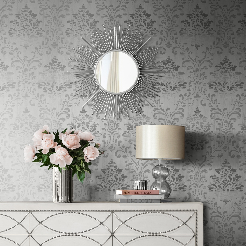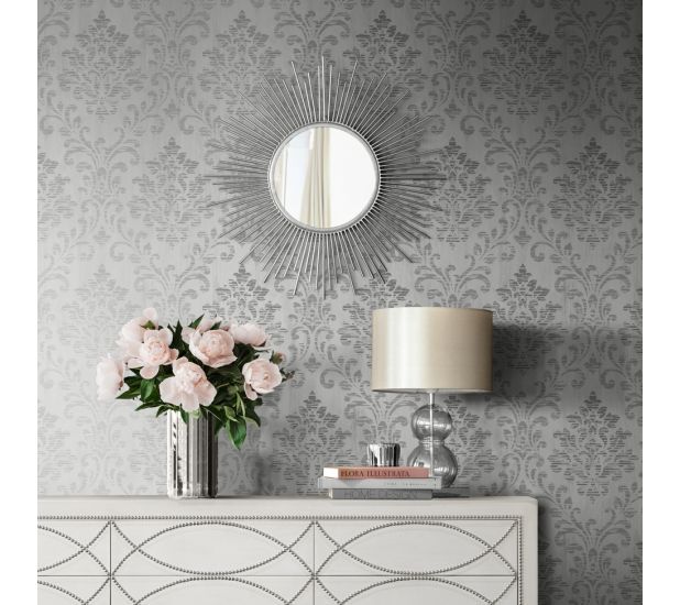 Charice damask wallpaper silver -Muriva
