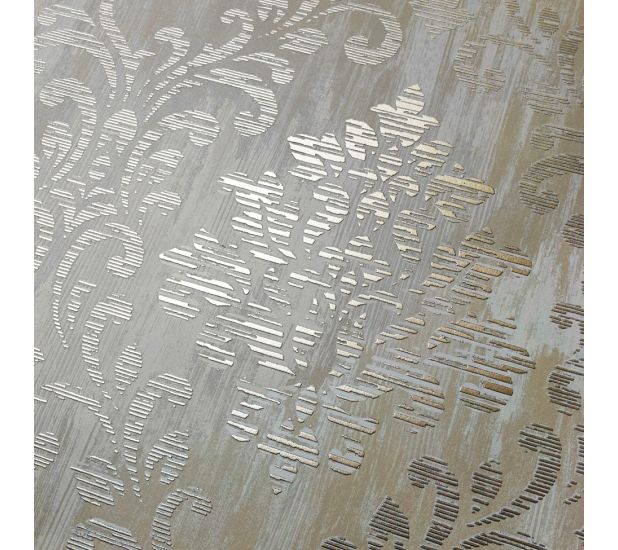 This stylish Charice Damask wallpaper by Muriva will make a great statement in your home. The design features a classic damask pattern in a beautiful metallic rose gold or silver with a distressed vintage effect. This is set on a matte background that has a faint wood grain pattern. Easy to apply, this high quality wallpaper would look great as a feature wall or equally good when used to decorate a whole room.