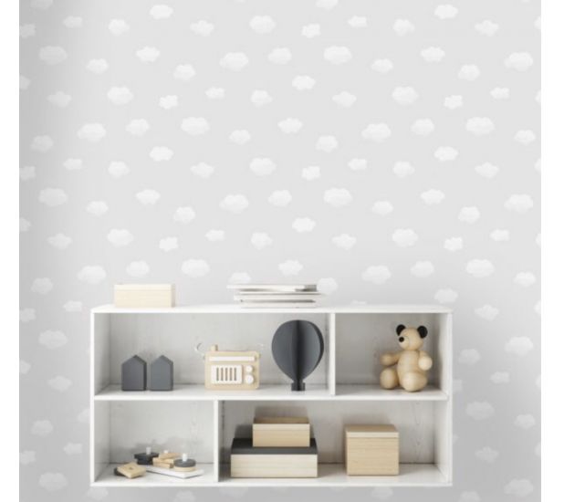 Cloudy sky from Over the Rainbow collection by Holden Decor is fun wallpaper and features white clouds all over on a blue back ground. Ideal for playrooms, nurseries and children’s bedrooms.