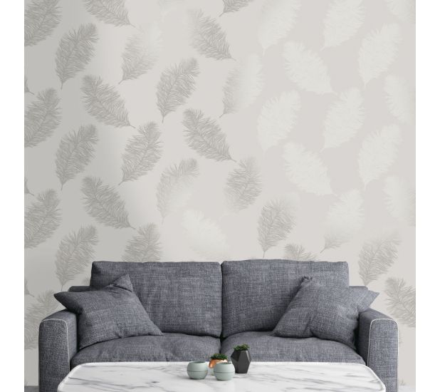 Fawning Feather Wallpaper- Grey