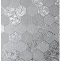 This geometric design silver wallpaper showcases light reflecting textures in a honeycomb frame. Ultra-modern and eye catching. This vinyl wallcovering will cover slight imperfections and it's suitable for all rooms