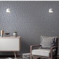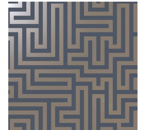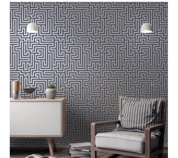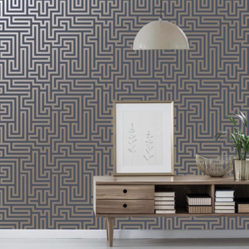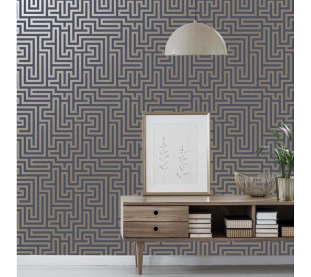Glistening Maze by Holder Decor is a high-shine metallic, flat printed wallpaper. It features a metallic labyrinth geometric print that contrasts against a matt background.A beautiful wallpaper that is ideal for any room.