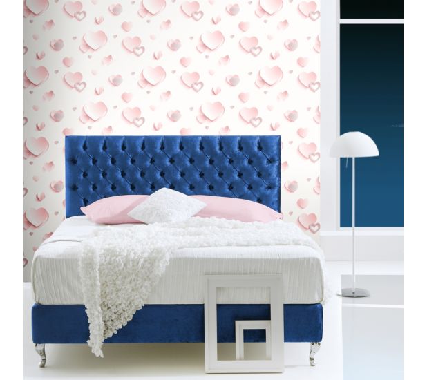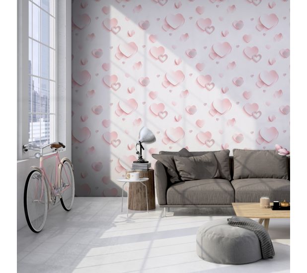 This beautiful 3D Hearts Wallpaper by Muriva is our modern collection. The simple but effective design features hearts in a soft pink tone or highlighted in silver glitter, set on a pale pink background with clever shading creating the 3D effect. Perfect for your little girls room or any other settings.