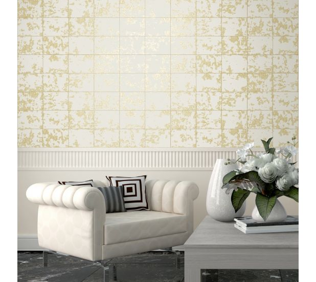 Loran tile pattern wallpaper gold- Muriva