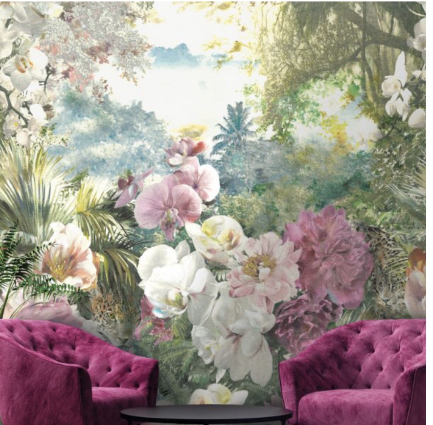 Majorelle from Utopia collection by Holden Decor is a large, bold, trailing floral digital wallpaper. This mural is printed on a high-quality fibrous non woven substrate with a mica finish.