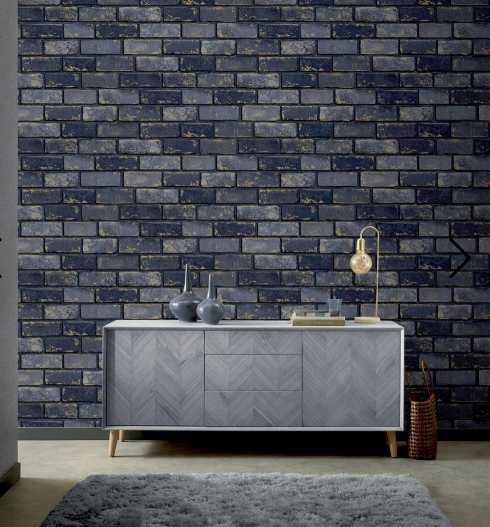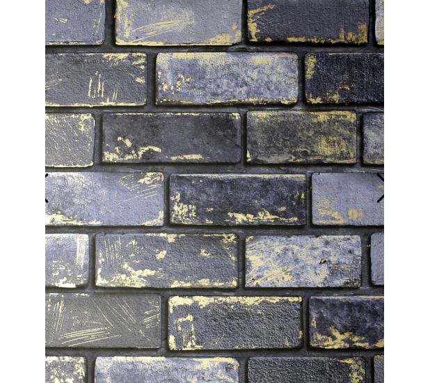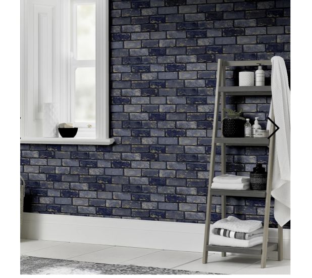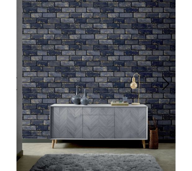 Metallic Brick Wallpaper Navy/Gold