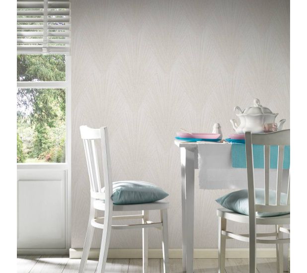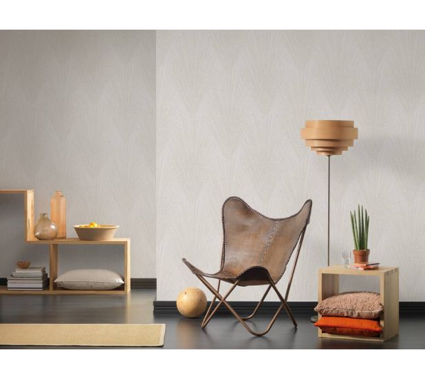 An elegant, bold palm leaves pattern from New Elegance collection by AS Creations, print that will make a statement in your room. The non woven wallpaper features gorgeous and bold palm leaves pattern on plain background to create a suttle but dramatic look in your home. Ideal for bedrooms, hallways or lounges.