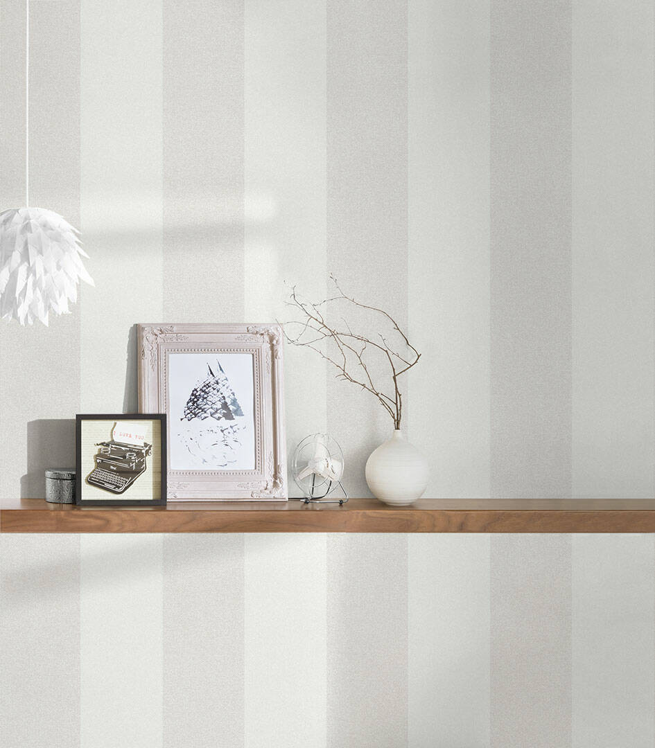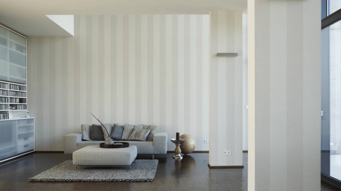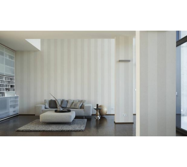 An elegant, bold and beautiful stripes pattern from New Elegance collection by AS Creations, print that will make a statement in your room. The non woven wallpaper features beige and cream stripes to create a suttle but dramatic look in your home. Ideal for bedrooms, hallways or lounges.