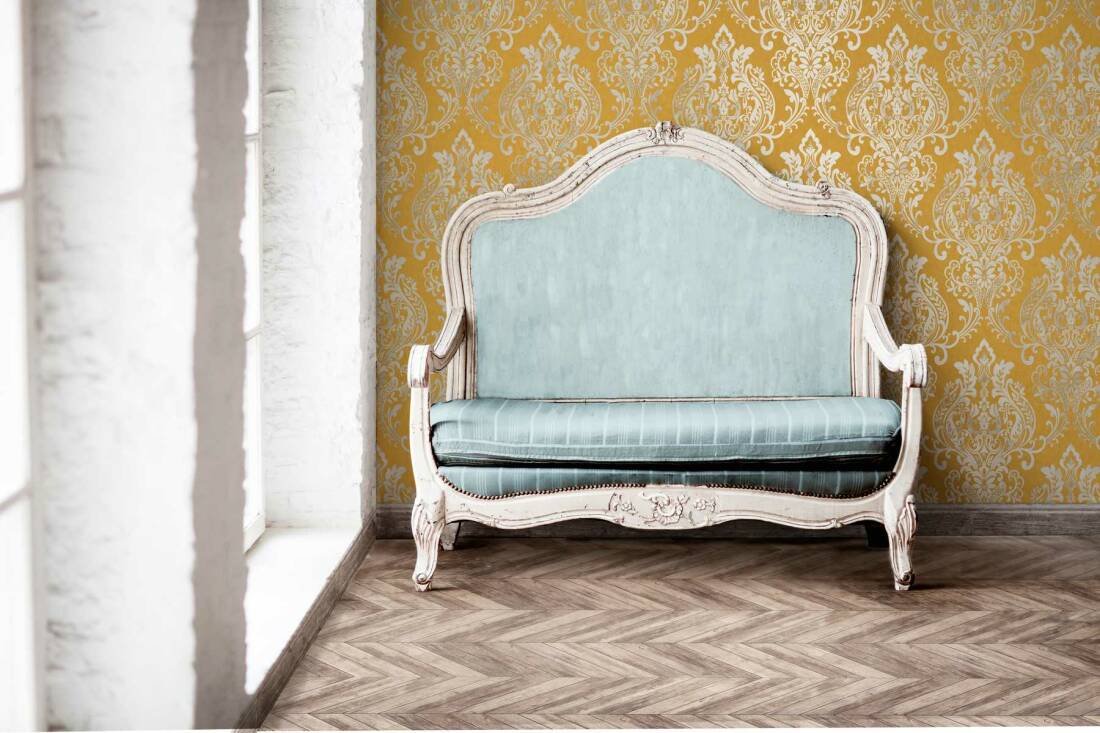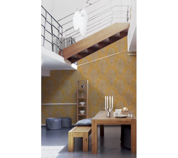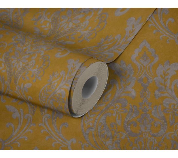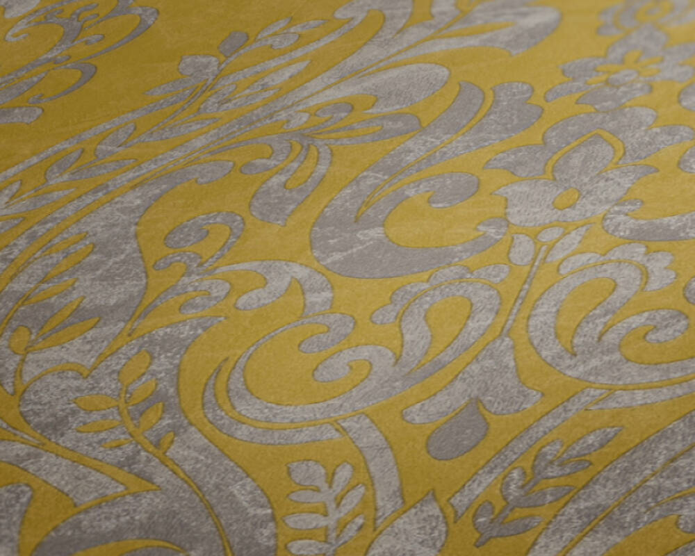 An elegant, bold and ever popular classic Baroque pattern from New Life collection by AS Creations, print that will make a statement in your room. The non woven wallpaper features metallic grey floral colour ways and classic baroque motives on yellow background to create a subtle but dramatic look in your home. Ideal for bedrooms, hallways or lounges.