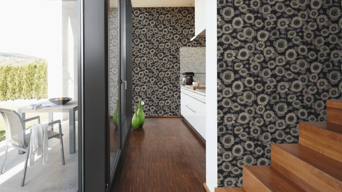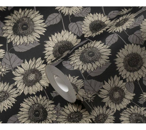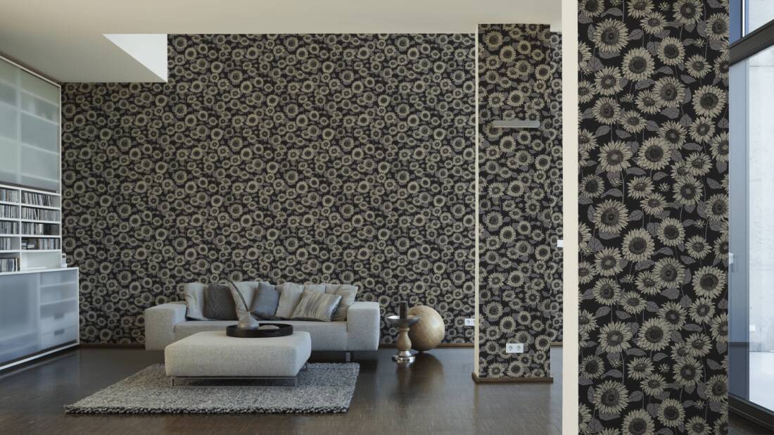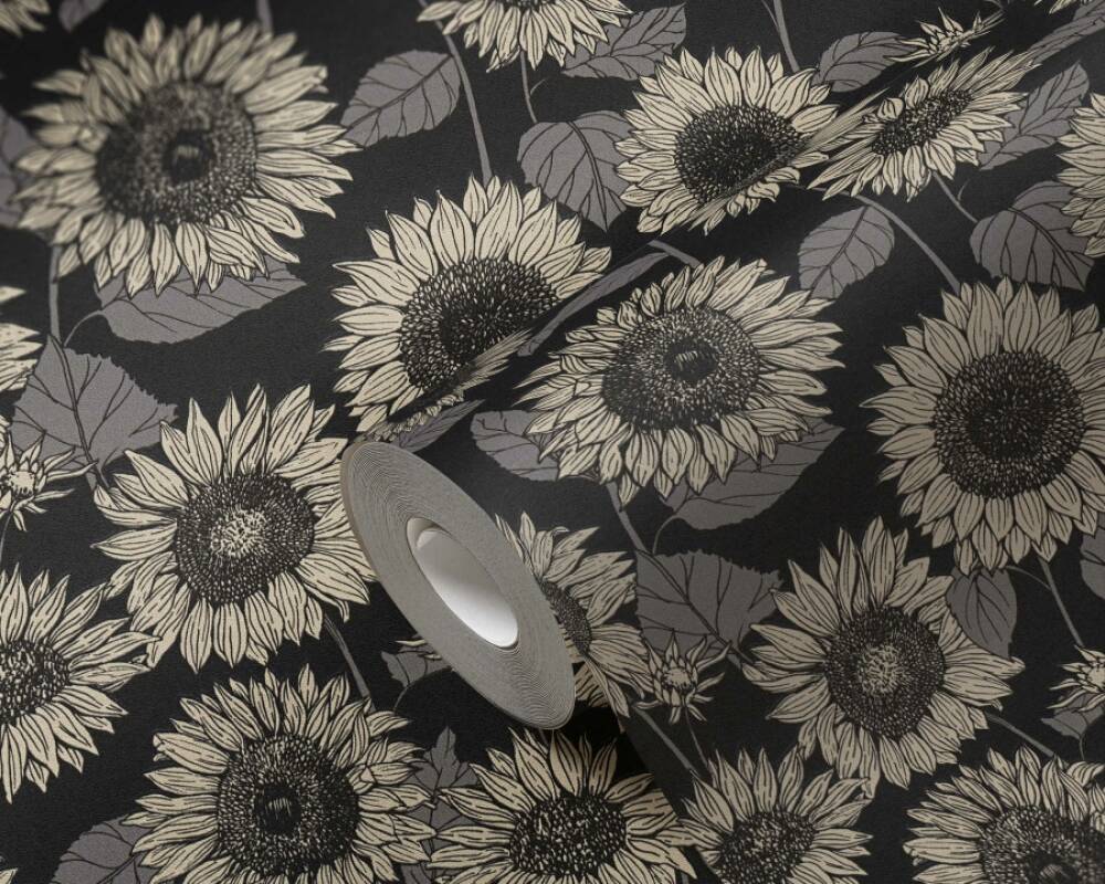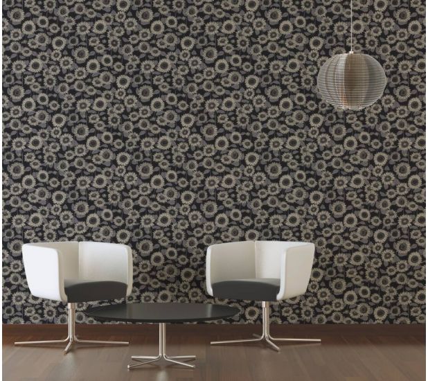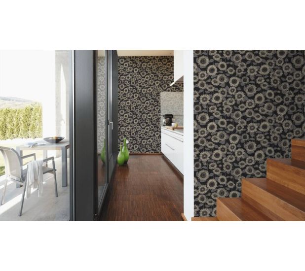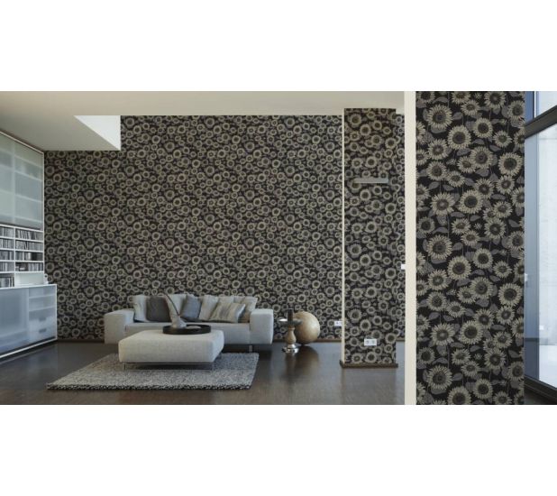 An elegant, bold and ever popular floral leaf pattern from New Life collection by AS Creations, print that will make a statement in your room. The non woven metallic wallpaper features grey and cream colour ways and floral pattern on black background to create a suttle but dramatic look in your home. Ideal for bedrooms, hallways or lounges.