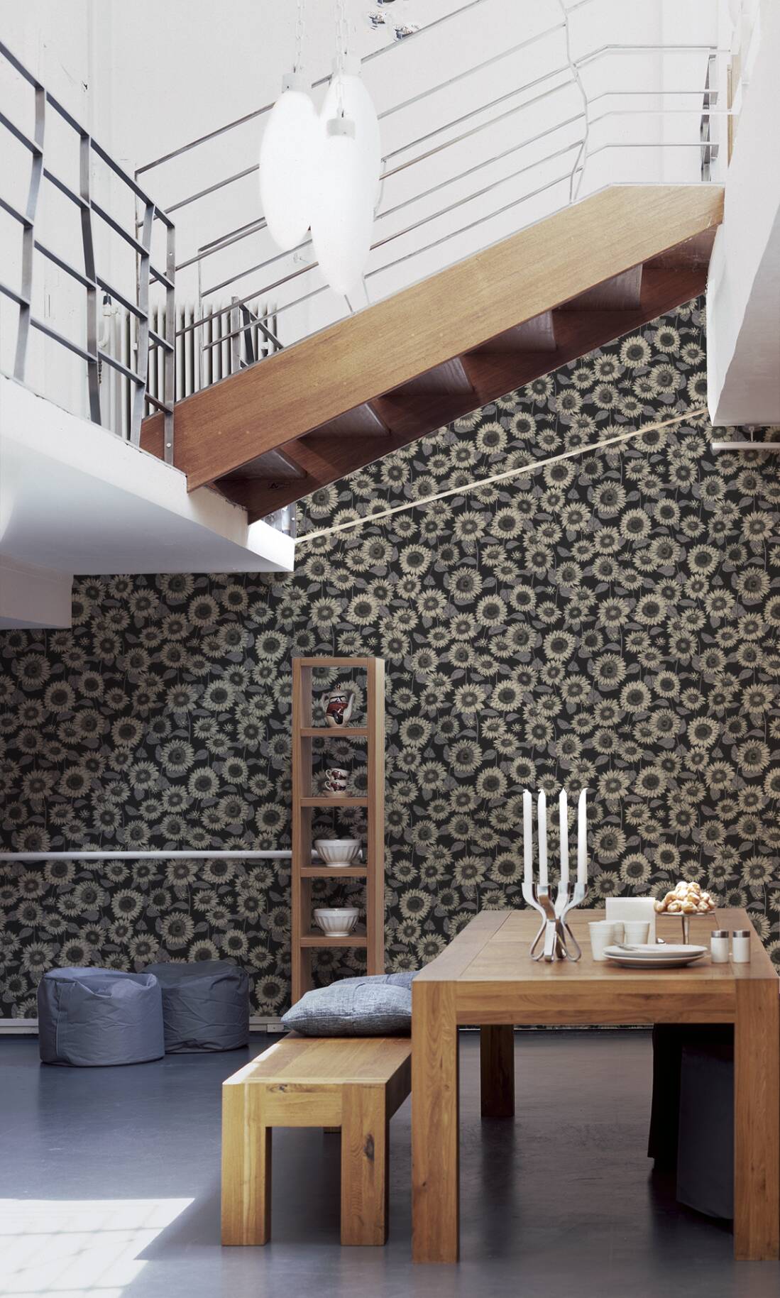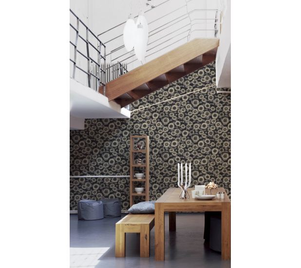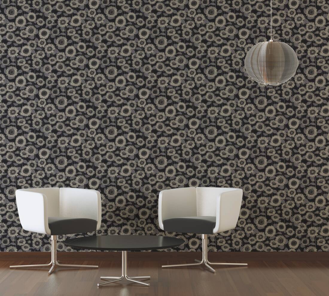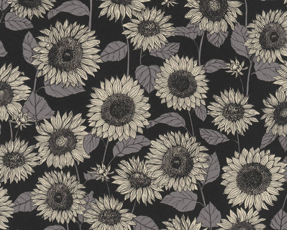 An elegant, bold and ever popular floral leaf pattern from New Life collection by AS Creations, print that will make a statement in your room. The non woven metallic wallpaper features grey and cream colour ways and floral pattern on black background to create a suttle but dramatic look in your home. Ideal for bedrooms, hallways or lounges.