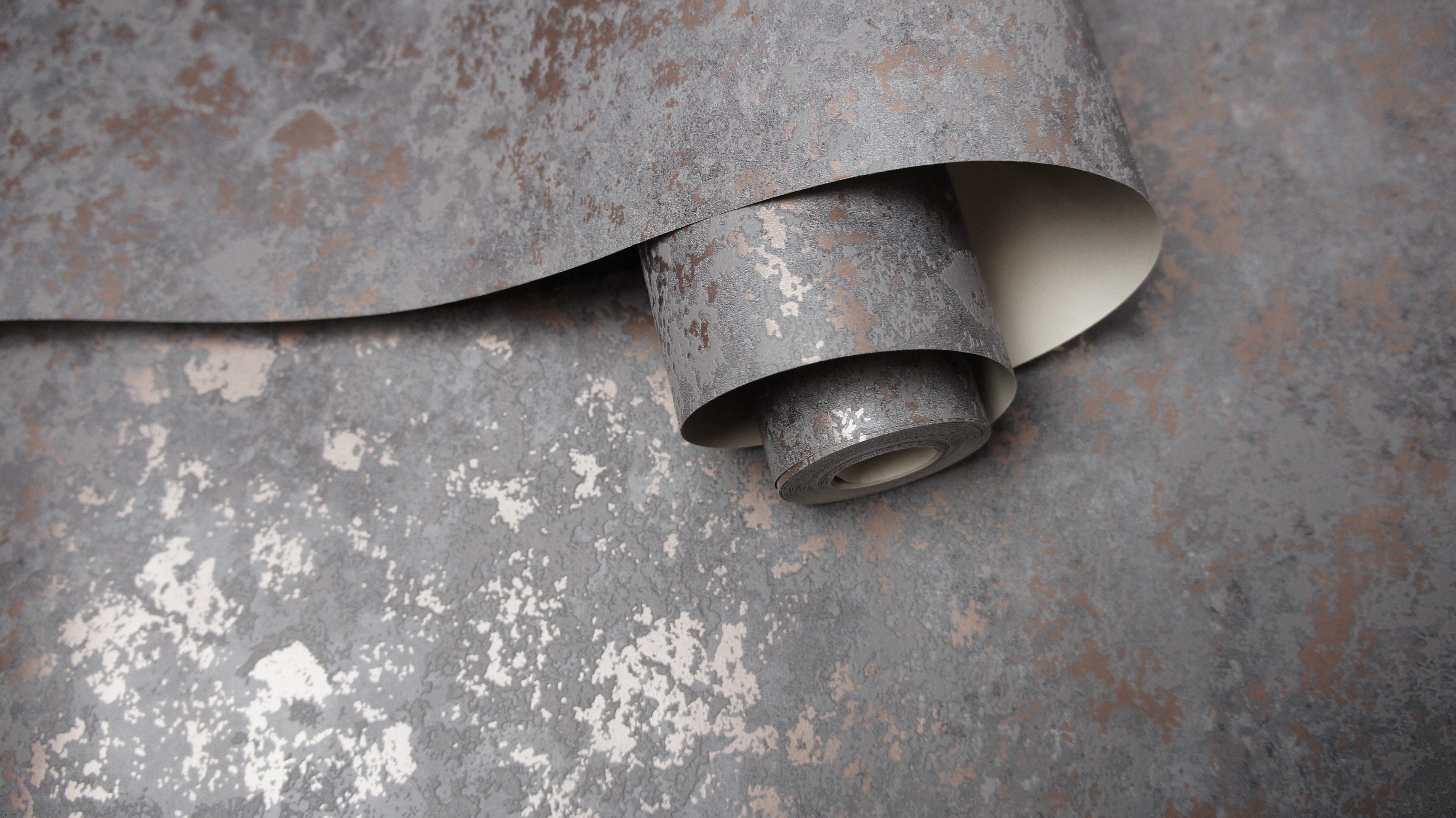 Obsidian by Holden Decor is a concrete-style textured wallcovering, which features high shine metallic flecks that contrast against a raised, textured, industrial ground. This beautiful geometric wallpaper is available in four gorgeous colours.