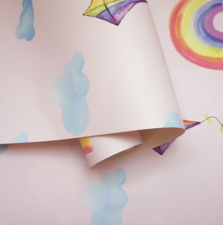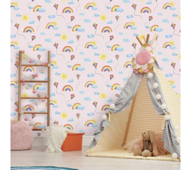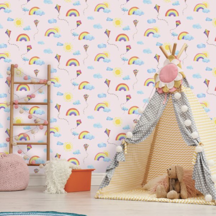 Rainbows and Kites Wallpaper- Pink