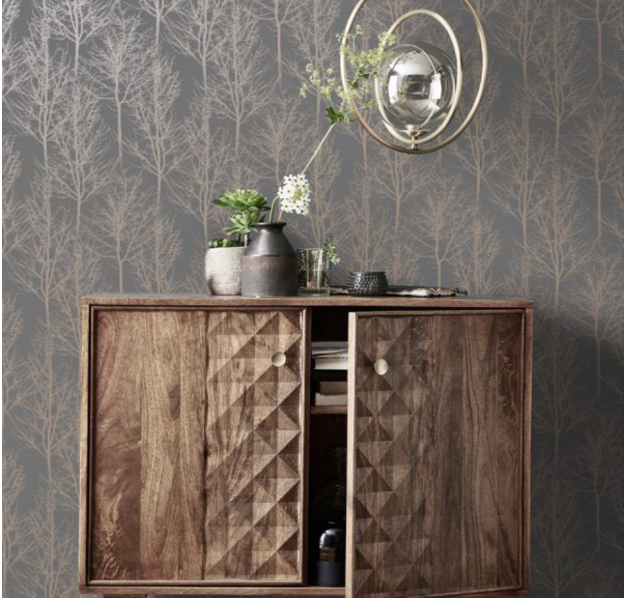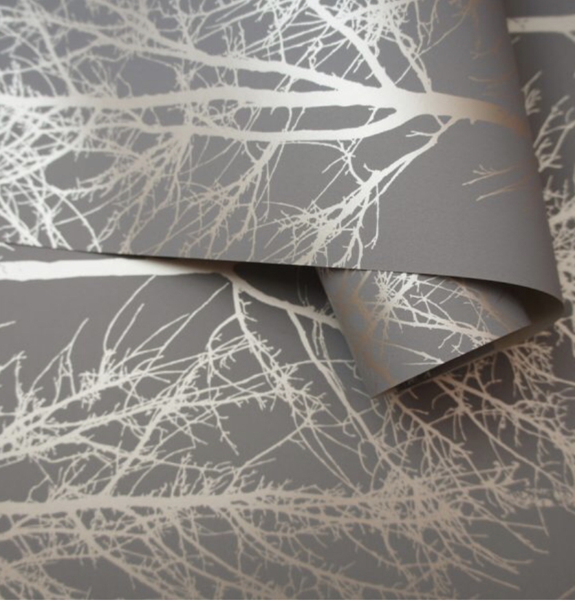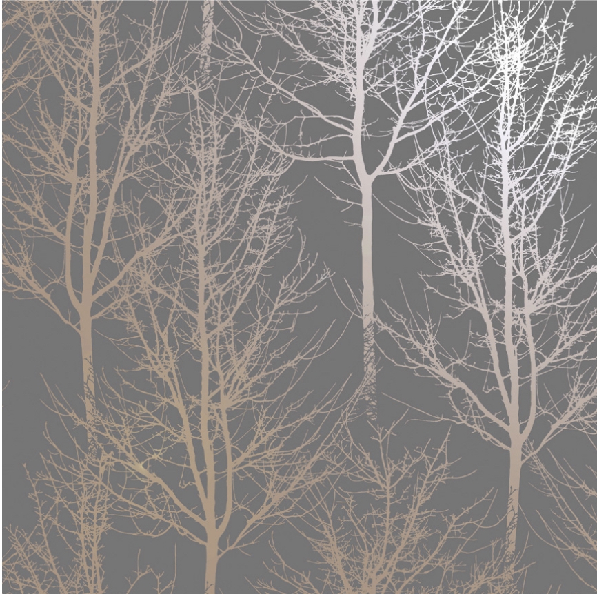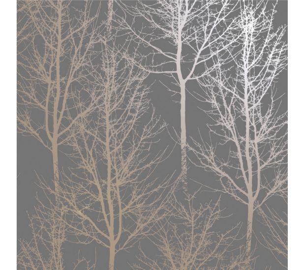 Rhea Trees Wallpaper- Charcoal/Rose Gold