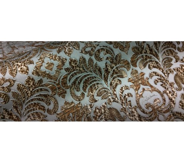 An elegant and classic baroque print in golden tones from Roberto Cavalli Home 7 by Colemans, an all over print that will make a statement in your room. It features metallic details with glistening shimmer and gorgeous textures.