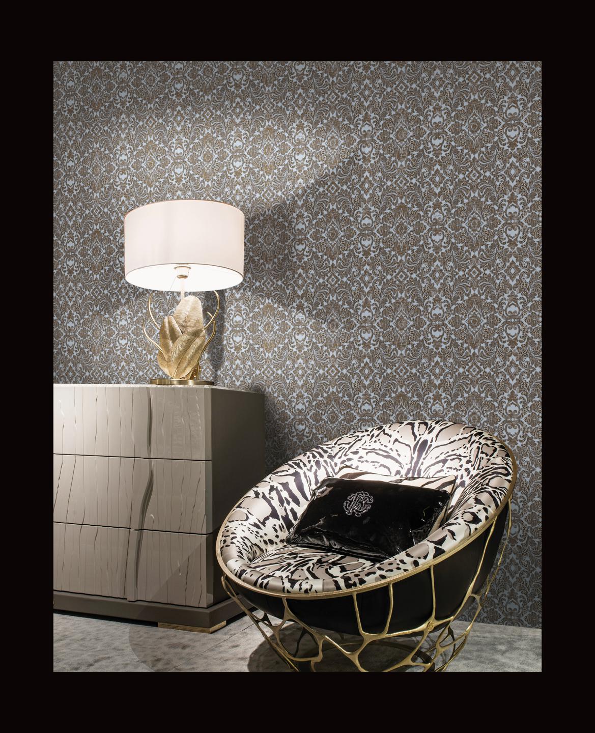 Roberto Cavalli Home No 7 Collection offers opulent, glamorous and luxuriors signature wall coverings fearuring stunning Italian vinyl designs. Animal prints, romantic damasks and lavish chain details showcased in neutral colour palette, the collection offers a diverse choice of wallpapers that will spectacularly set the scene in any room. Mix and match with the wide range of plain colours and these glamorous style wallpapers will turn any interior into a powerful statement.