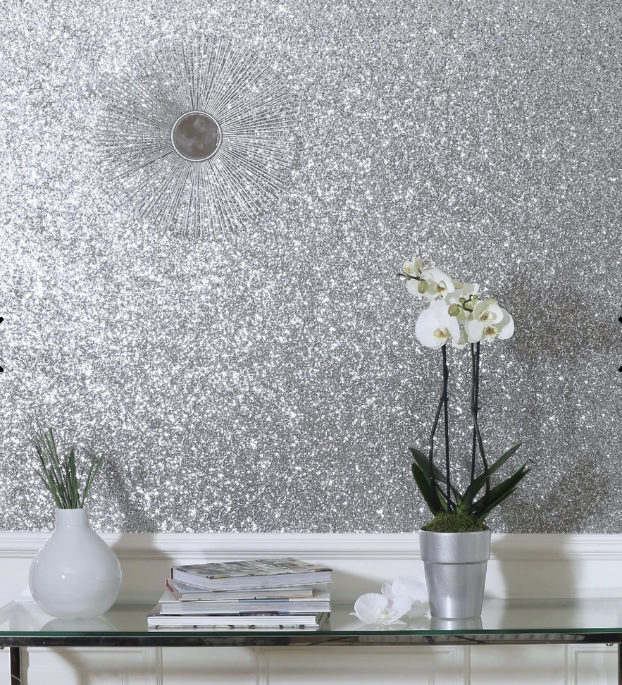 Sparkly and shimmering, this sequin finish wallpaper will bring maximum glitz to any space. Team it with painted walls, a striking patterned paper or even throughout a room for a fabulous effect. It really is a paper designed to turn heads. With a textured metallic finish, light bounces off in every direction, for glamour by day and by night. Hang it in a walk in wardrobe, cloakroom or feature wall for instant luxury. Suitable for most rooms except high moisture environments. The size of this roll is 6m. x 0.53m.