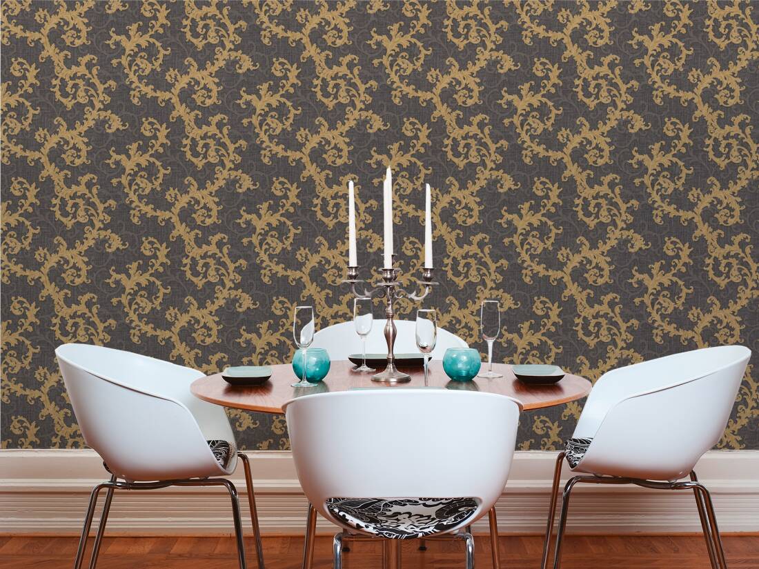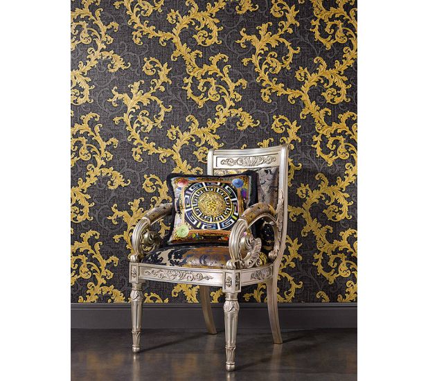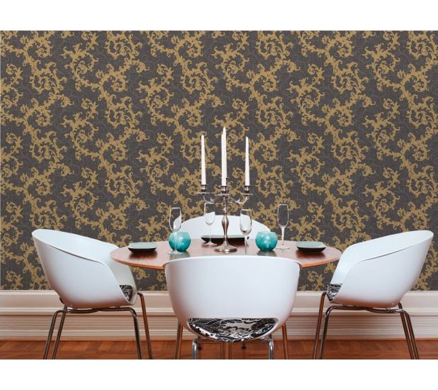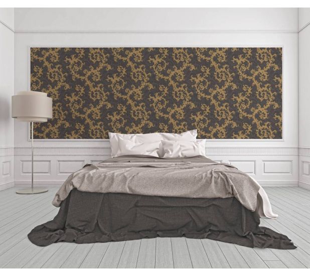 An elegant, bold and ever popular classic Versace print that will make a statement in your room. The wallpaper features gold metallic colour ways and floral pattern on grey background to create a subtle but dramatic look in your home. Ideal for bedrooms, hallways or lounges. This wallpaper is available in 4 colours.