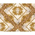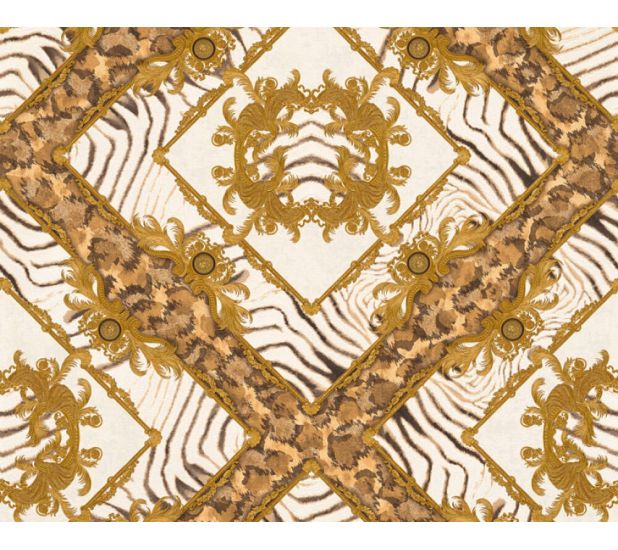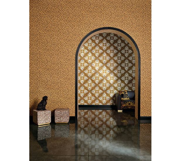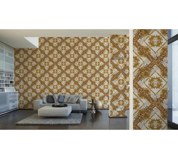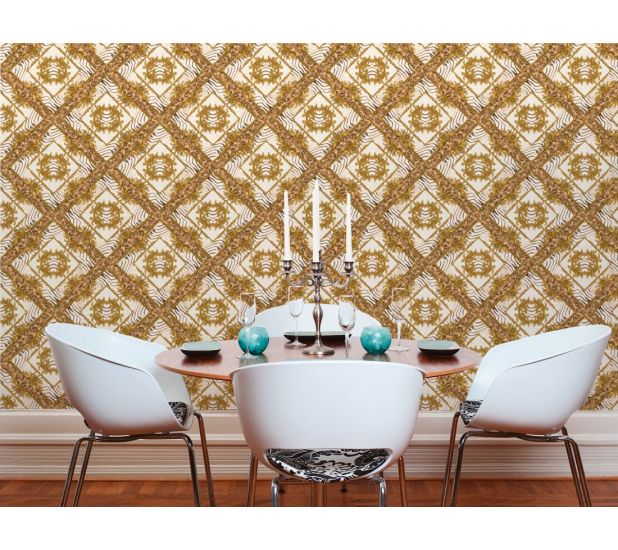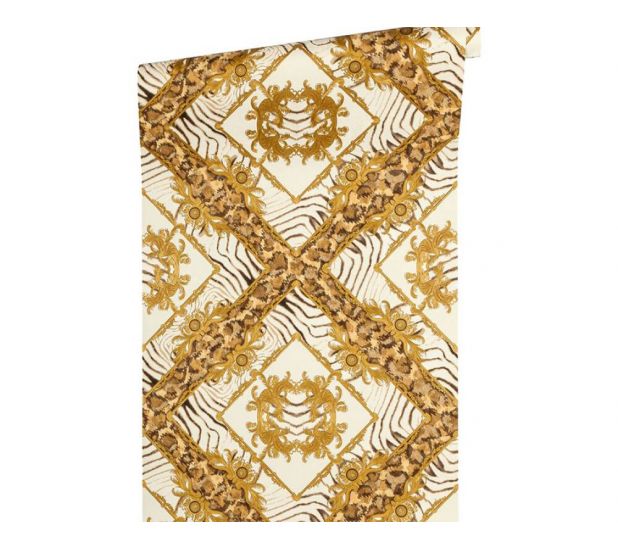 An elegant, bold and ever popular classic Versace print that will make a statement in your room. The wallpaper features brown, gold, and cream contrasting colour ways to create a suttle but dramatic look in your home. Ideal for bedrooms, hallways or lounges. This wallpaper is available in 4 colours.