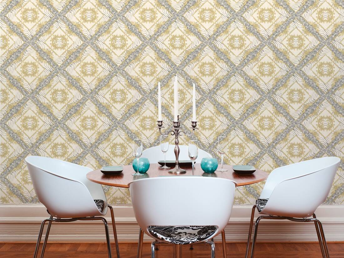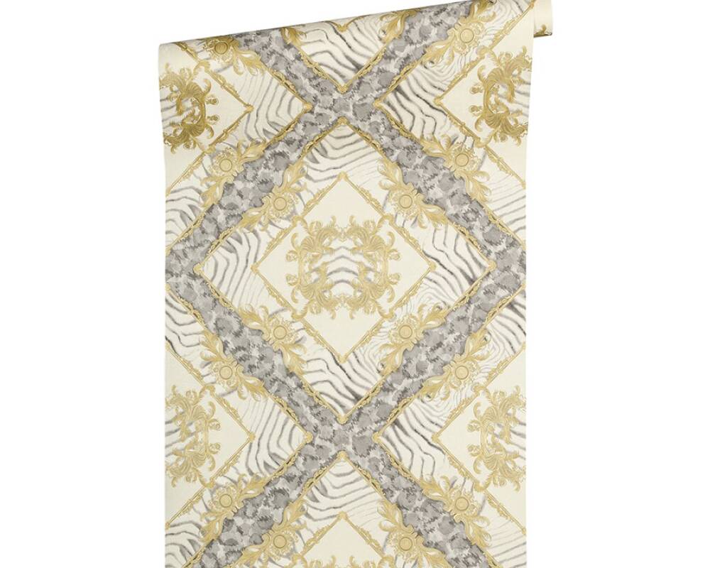 An elegant, bold and ever popular classic Versace print that will make a statement in your room. The wallpaper features grey, beige and cream contrasting colour ways to create a suttle but dramatic look in your home. Ideal for bedrooms, hallways or lounges. This wallpaper is available in 4 colours.