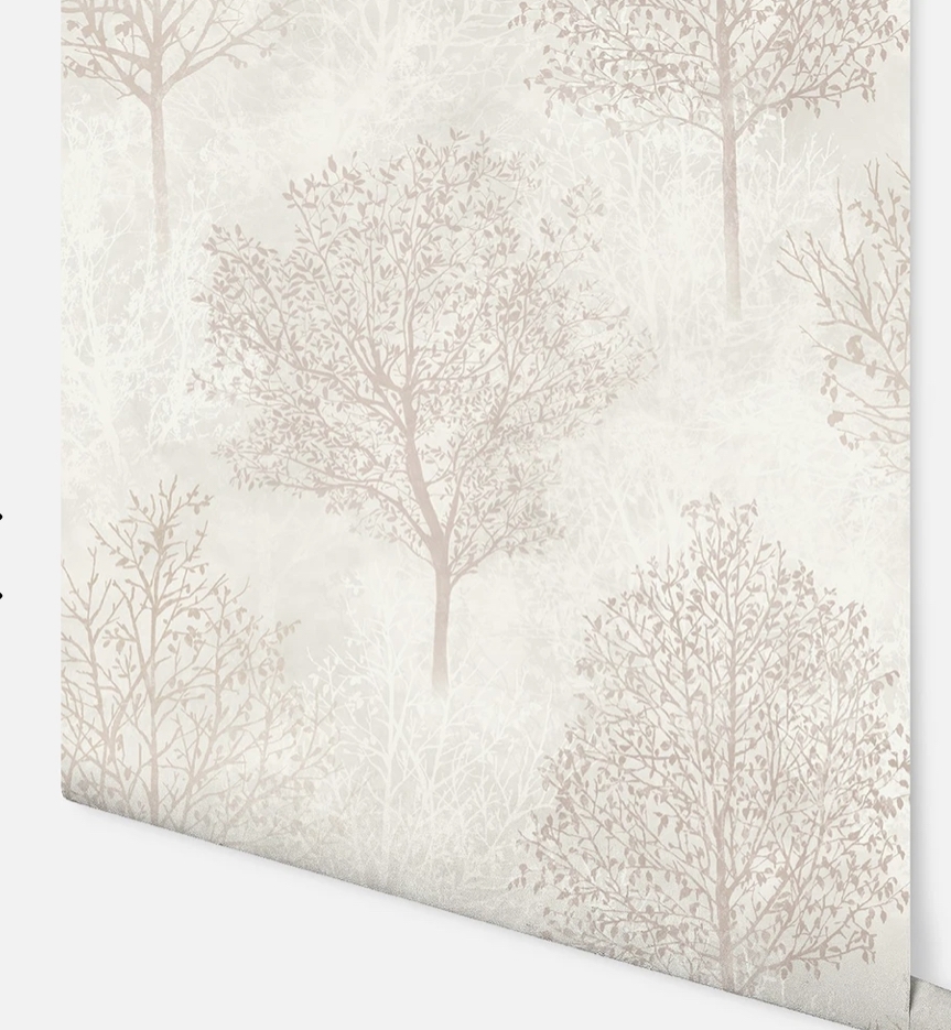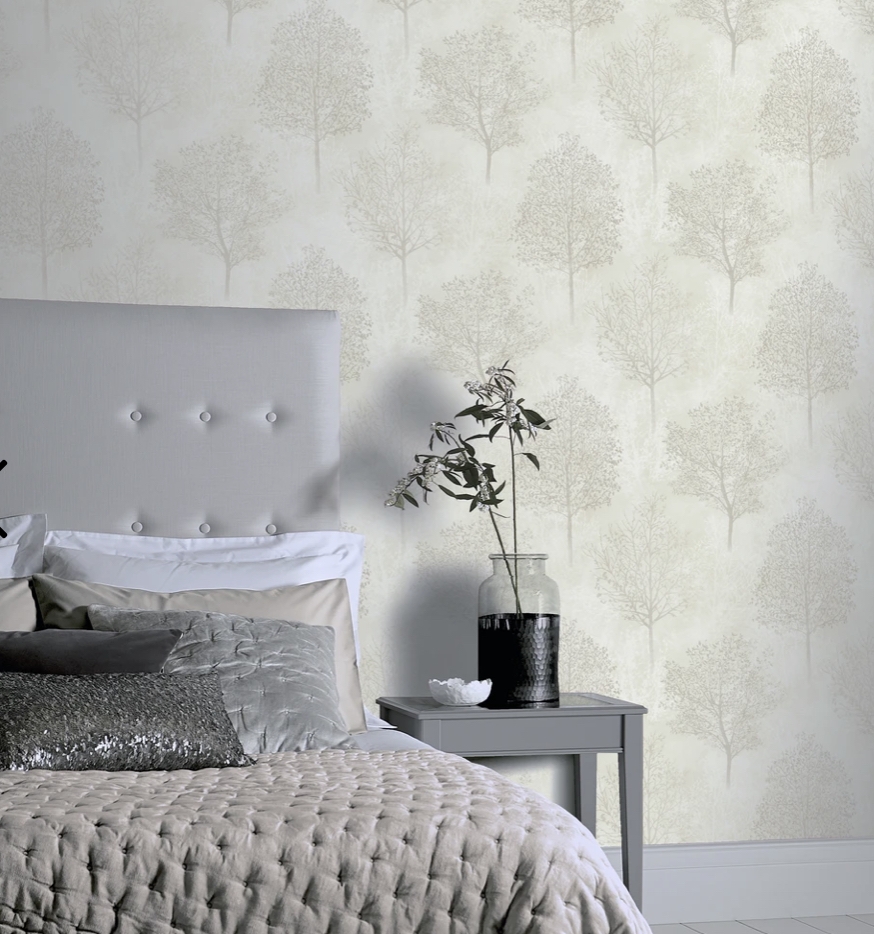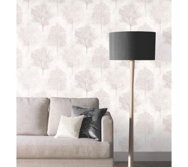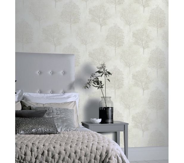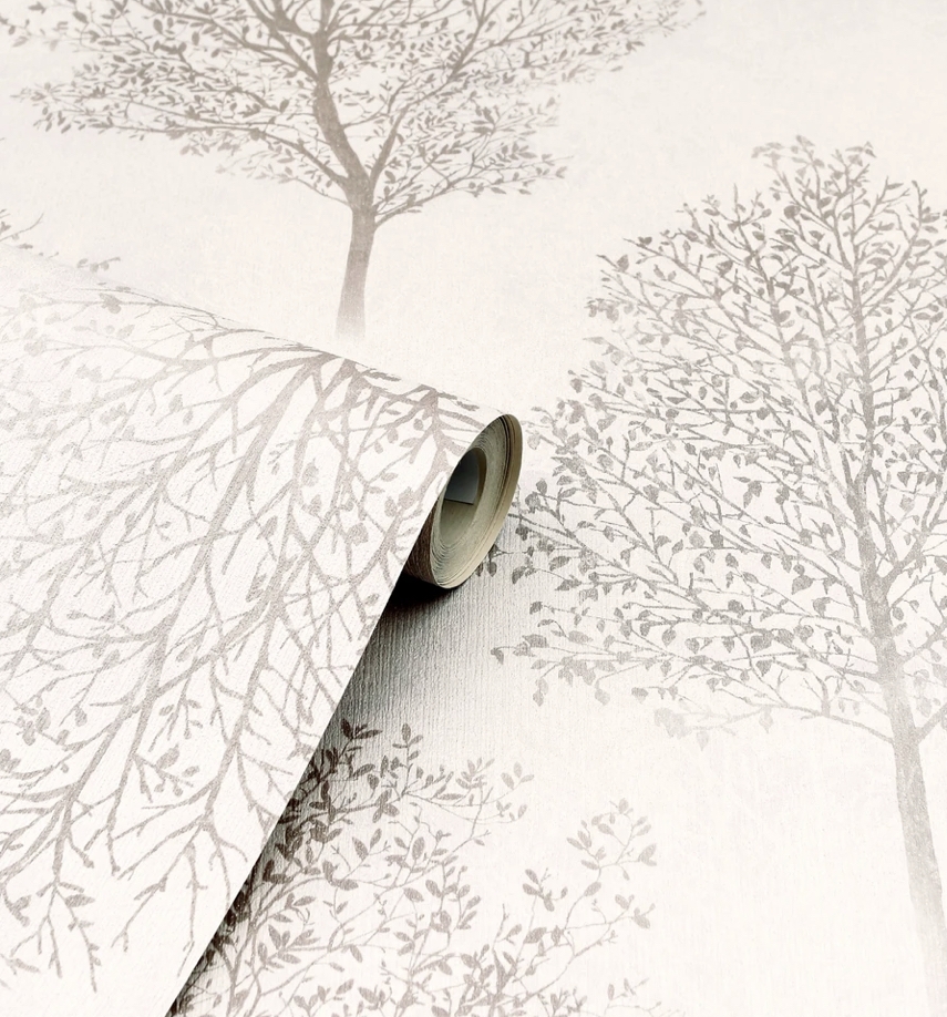 A subtle woodland wallpaper design with no shortage of mystical appeal. With silhouettes of trees in pale, natural tones and an all-over glitter finish to catch the light from every angle. This textured paper will add a touch of luxury to your home, whether it's traditional or contemporary in look. A vinyl wallpaper, it's not only tough and hardwearing - ideal for high traffic areas like halls - but it will cover slight imperfections too. So wherever you hang it, from living room and dining room to bedroom and bathroom, this is a paper that blends practicality with elegant style.