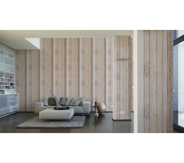 An elegant, bold and modern cottage wood pattern from II Decoro collection by AS Creations, print that will make a statement in your room. The non woven wallpaper features wood panels to create a subtle but dramatic look in your home. Ideal for bedrooms, hallways or lounges.