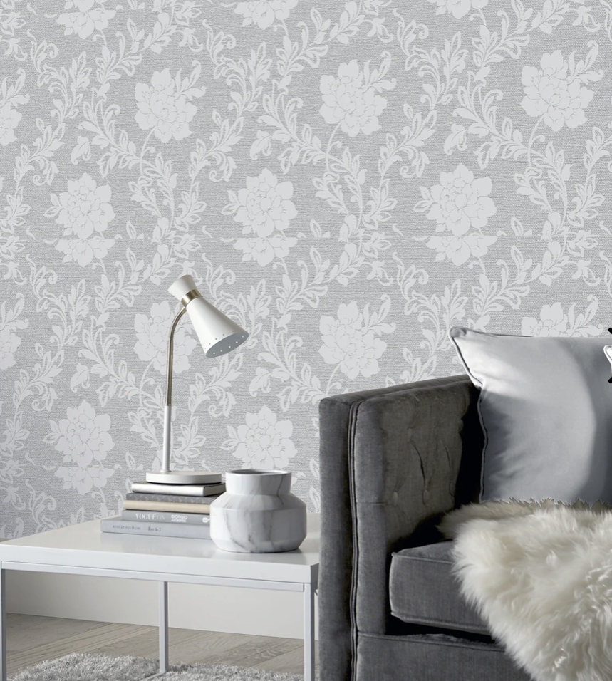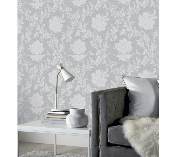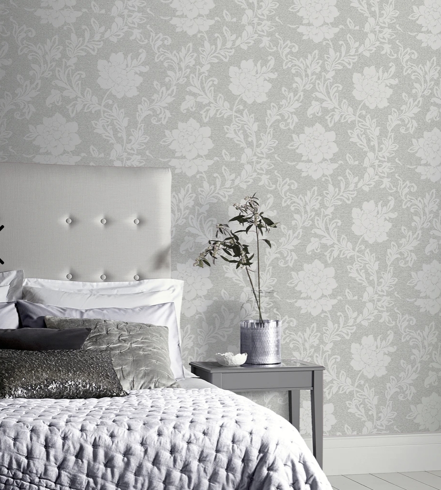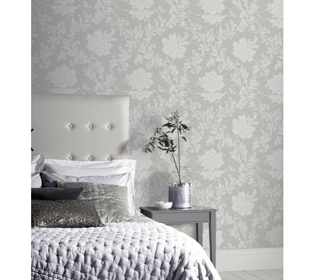 Understated yet very elegant, this floral wallpaper will look stylish in a bedroom, lounge or dining room, introducing a sense of calm. In a soft and easy living grey colourway with a textured background and a contrasting pearlescent 'mica' effect on the floral pattern that catches the light and brings a subtle shiny effect to your walls. A timeless design that will work in a modern home or traditional property. This blown vinyl wallpaper will cover slight imperfections on your walls and it is perfect to finish off any room.
