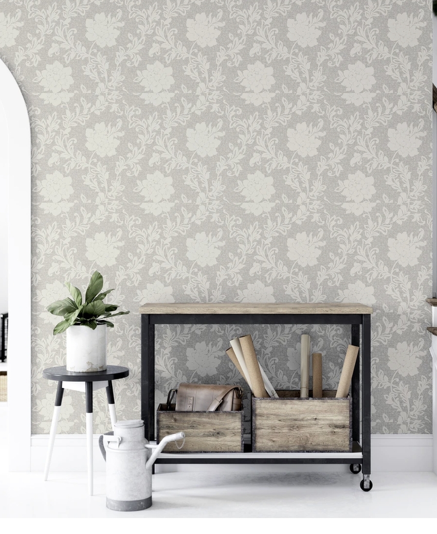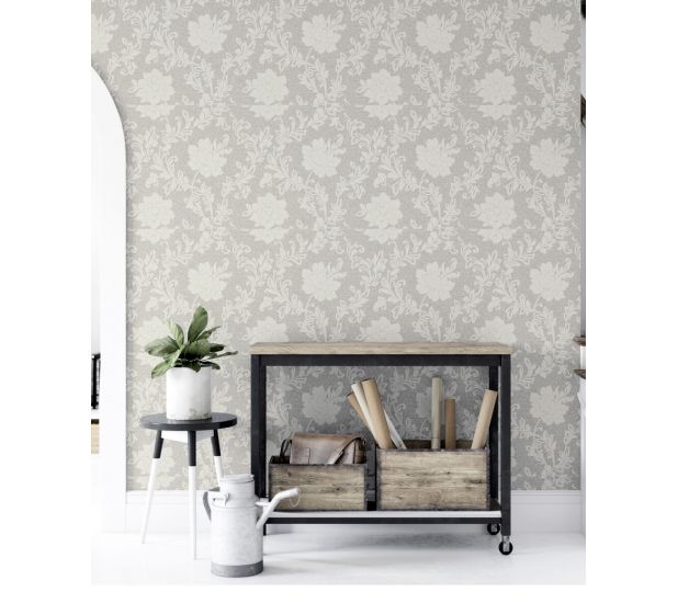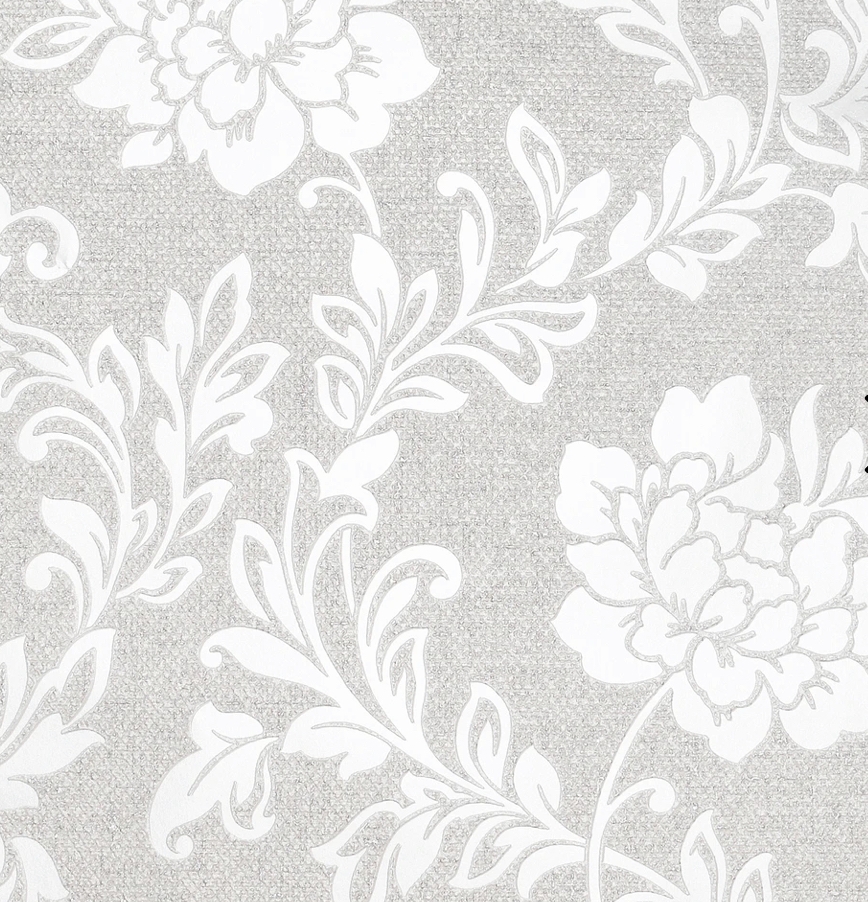 Understated yet very elegant, this floral wallpaper will look stylish in a bedroom, lounge or dining room, introducing a sense of calm. In a soft and easy living grey colourway with a textured background and a contrasting pearlescent 'mica' effect on the floral pattern that catches the light and brings a subtle shiny effect to your walls. A timeless design that will work in a modern home or traditional property. This blown vinyl wallpaper will cover slight imperfections on your walls and it is perfect to finish off any room.