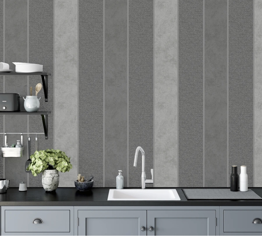 A timeless classic, this large-scale stripe wallpaper design will add a sophisticated air to a room. In a pale mix of grey tones and contrasting different finishes, it is a versatile, modern grey option that will go with so many styles of furniture and interior décor. With a fabric-look texture, the overall feel of this paper is relaxed and elegant. Whether you choose it for a feature wall, chimney breast or alcoves - or hang it on all four walls - you can be sure that this blown vinyl wallpaper will add a light and airy feel to your home. Suitable for most rooms including the living room, dining room, bedroom or study.